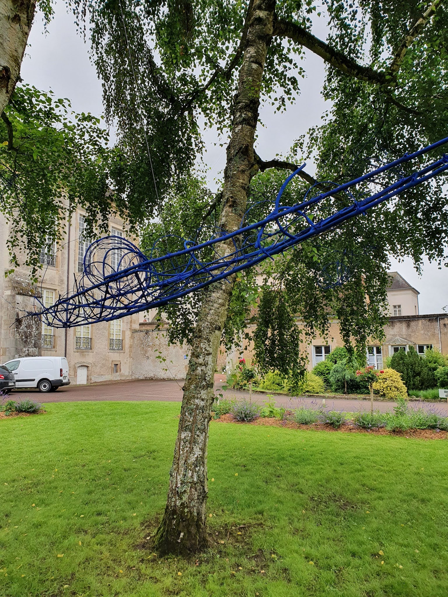 – Polska, sculpteur plasticienne du Land-Art, se partage entre Paris, le Morvan et ses voyages. Après le marbre, la terre et les pierres, elle travaille maintenant les branches, le bambou, les papiers, l’encre, les pigments naturels et la patine du temps. Prix Bourdelle en 1993 à Paris et à remporter le concours « Renouveau du Centre Ville de Ronchamp » en Haute-Saône. Elle présente quelques sculptures et une pirogue de 8 mètres de long avec ses spirales chargées symboliquement d’énergie, en bambou bleuté proche du ciel, dont la direction part de la pointe de la cathédrale de Saint Lazare derrière l’Evêché. . Elle dit : « La nature me donne, il faut que je redonne à la nature ». Elle est une transmetteuse et une passante. Elle expose dans le jardin de l’Evêché.