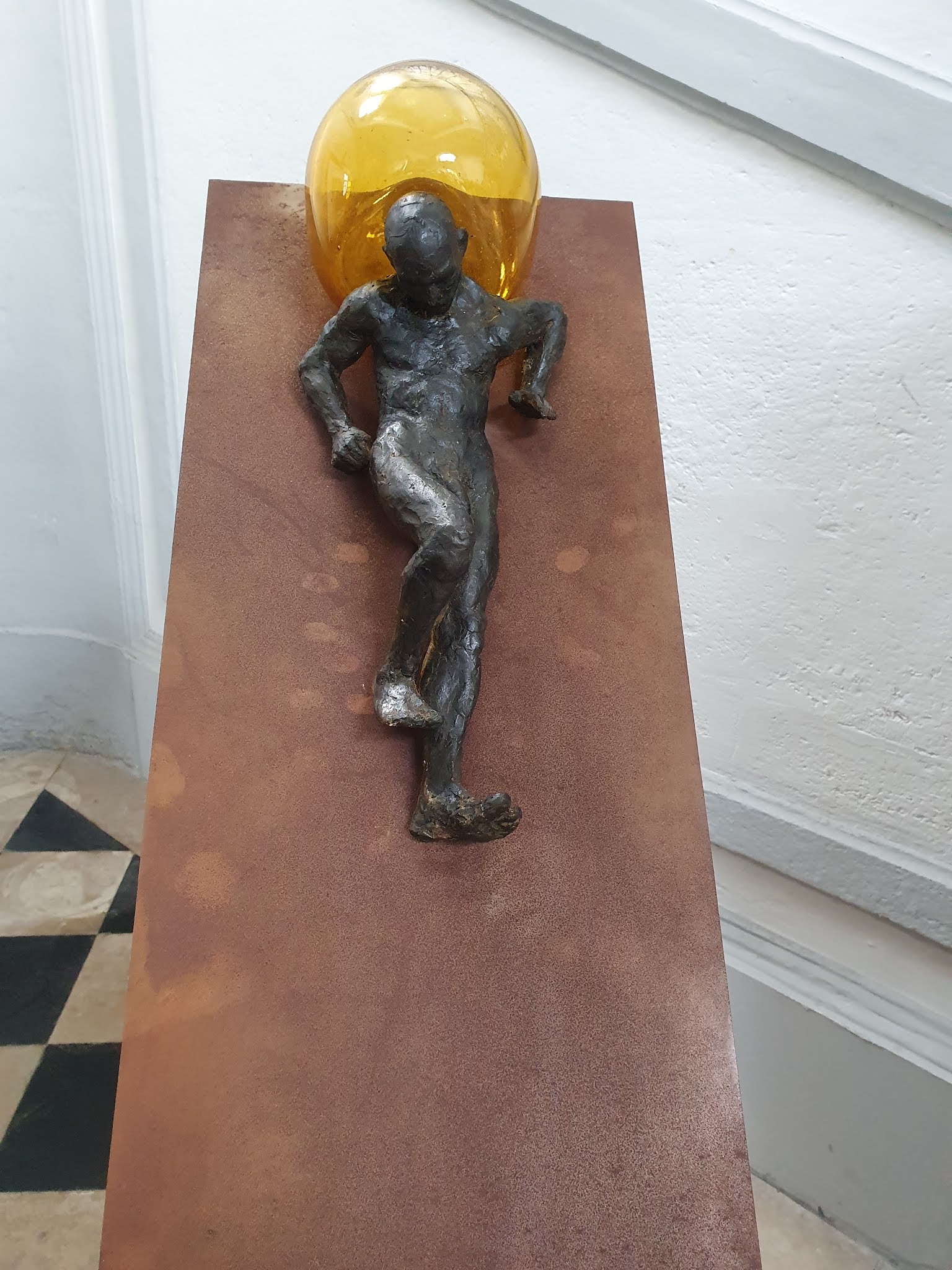 « Sisyphe » acier, verre soufflé (57x65x35cm) de Pierre de Saint Maur