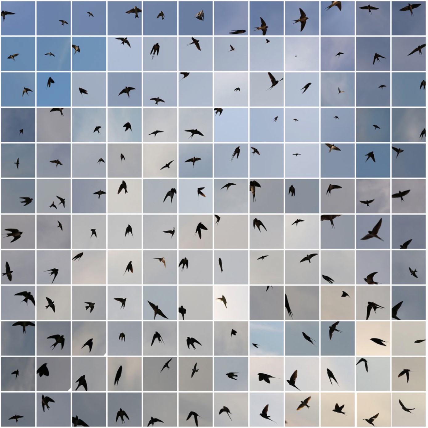 L’oeuvre « Le Bleu du ciel » part d’un souvenir d’enfance, un projet autour du vol de l’hirondelle, de ces oiseaux dans le ciel, de leur rassemblement sur les fils électriques avant de partir pour l’Afrique à la fin de l’été. Deux fois par an, des hirondelles traversent le Sahara, la Méditerranée pour rejoindre l’Afrique Subsaharienne et l’Europe, une histoire de voyage.